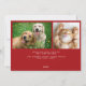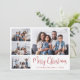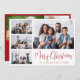Moderne Urlaubskarte mit einer 4-Foto-Collage auf der Vorderseite, "Frohe Weihnachten" in einem schicken roten Drehbuch und Ihrem Namen und Jahr in einfacher Typografie. Fügen Sie zwei zusätzliche Fotos auf der Rückseite und Ihre personalisierte Begrüßung zu Familie und Freunden.