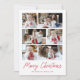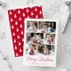 Moderne Urlaubskarte mit 6 Fotos in Collage. "Frohe Weihnachten" wird in einem handgeschriebenen roten Skript mit Ihrem Familiennamen und dem unten abgebildeten Jahr angezeigt. Die Multi-Foto-Urlaubskarte kehrt zurück, um ein rot-weißes Weihnachtsbaummuster anzuzeigen.