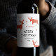 "Frohe Weihnachten" Weinetikett mit Rentieren aus rotem Holz für Winterferien, Geschenke.
