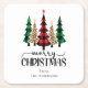 Frohe Weihnachten Rot Grün und Schwarz Karierte Bä Rechteckiger Pappuntersetzer