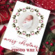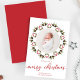 Dieses Design umfasst ein fröhliches Weihnachtsfest, eine Fotokarte mit rot und grün, botanisches Blattwerk, eine Schriftzeichen-Schrift, eine einfache Kalligraphie, minimalistische Heilbeeren mit minimalen Kiefernfüßen und eine Fotokarte mit einer Kreissymbol-Fotovorlage.