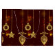 Schöne Weihnachtsfeiertage mit funkelnden Glitzer Weihnachtsschmuck und Licht auf dunkelroten Hintergrund.