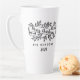 Frohe Weihnachten Rustikale Ribbon Familie Name Latte Tasse. Schwarz-Weiß-Design mit Fröhlicher Weihnachtsschrift auf einem rustikalen Band mit Blattwerk. Großartig als Weihnachtsgeschenk für die Familie. Geben Sie Ihren Familiennamen und das Jahr ein.