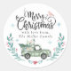 Frohe Weihnachten Rustikaler Green Truck Winter Floral Classic Round Sticker