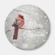 Ein schöner Kardinal liegt auf einem Winterbaum mit magischem Schnee im Hintergrund eines schönen Winterfotos. Wünschen Sie Ihren Freunden ein frohes Weihnachtsfest mit diesem klassischen Magneten.