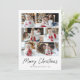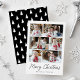 Moderne Urlaubskarte mit 6 Fotos in Collage. "Frohe Weihnachten" wird in einem handgeschriebenen schwarzen Skript mit Ihrem Familiennamen und dem unten abgebildeten Jahr angezeigt. Die Multi-Foto-Urlaubskarte kehrt zurück, um ein schwarz-weißes Weihnachtsbaummuster anzuzeigen.