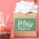 Frohe Weihnachten Simple Girly White Script Green Rechteckiger Aufkleber