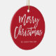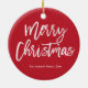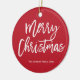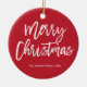 Frohe Weihnachten einfache rot-weiße Baum-Ornament mit veränderbarem Text - Sie können Familienname und Jahr ändern.