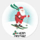 Frohe Weihnachten Skiing Santa Claus | Urlaub Runder Aufkleber