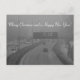 Fröhliche Weihnachten und eine glückliche Neujahrskarte mit einem Stau in der Hauptverkehrszeit auf der Helsinki-Autobahn bei einem feuchten und hässlichen Winterwetter.