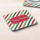 Fröhliche Weihnachtsanschauung mit Text- und Schneeflocken-Design auf rot, weiß und grün gestreiften Hintergrund