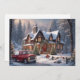 Eine Weihnachtskarte mit einer Vintagen Hütte im Wald, zu Weihnachten mit einem roten LKW in der schneebedeckten Einfahrt dekoriert. Dieses Design wurde von Debbie Quick aus Debs Creative Images erstellt: www.debscreativeimages.com