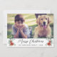 Fröhliche Weihnachts-Foto-Urlaubskarte mit Ihrem Foto, "Frohe Weihnachten" in einem zeitgenössischen Drehbuch, Ihr Familienname in schlichter moderner Typografie und Aquarellbouquets von Poinsettia Blume und Wintergrün. Fügen Sie 3 zusätzliche Fotos und Ihre Vornamen auf der Rückseite hinzu.