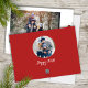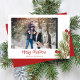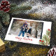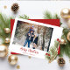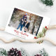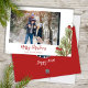 Dieses Design zeichnet sich durch die niedliche Weihnachtszeit, die Aquarellroter Heiligenbeeren rustikal, die Weihnachtsroten Heiligbeeren, die Familienbilder zwei Fotos, die botanischen Pinienverzweige, die minimalistische whimsikale Typografie, die moderne angesagte Kalligraphie-Schrift, die elegante Grün des Winterwaldes, die Weihnachtsfeiertagskarten, die moderne elegante Trendgotische Schriftart, Weihnachtskalligraphie-Schriftart