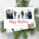 Dieses Design zeichnet sich durch die niedliche Weihnachtszeit, die Aquarellroter Heiligbeeren rustikal, die Weihnachtsroten Heiligenbeeren, die 4-Foto-Familienbilder, die botanischen Kiefernzweige, die minimalistische whimsikale Typografie, die moderne angesagte Kalligraphie-Schrift, die elegante Grün des Winterwaldes, die Weihnachtsfeiertkarte, die moderne elegante Trendgottliche Schriftart, Weihnachtskalligraphie-Schriftart