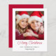Grußkarte mit Foto und "Frohe Weihnachten" in einem stilvollen roten Drehbuch.