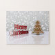 Köstliche und elegante Weihnachtsbilderung mit einem dekorierten Lebkuchenbaum und einem rot-metallischen 3D-Gruß auf einem hellen glamourösen Hintergrund.