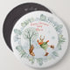 Lieblicher und bearbeitbarer Weihnachtsrundknopf mit Skaten Reh und Eichhörnchenspiel in der Winterlandschaft. Made aus mir für dich! Bearbeiten Sie den Namen, den Text und das Datum nach Belieben.