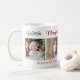 Diese Weihnachtsweih-Tasse ist ein einzigartiges personalisiertes Urlaubsgeschenk für die Mama, mit 4 Fotos und einer anpassbaren Botschaft.