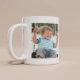 Feiern Sie die Opa in dieser Weihnachtszeit mit dieser maßgeschneiderten Tasse mit 2 Fotos versteckter Enkel und Familie und "Frohe Weihnachten" in der modernen saisonalen roten Typografie.