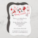 Diese erschwingliche Klammer formt Weihnachts-Open House Einladung hat einen weißen Hintergrund mit zahlreichen schwindelerregenden festlichen Gegenständen wie ein Geschenk, Weihnachtsbaum, Dekorationen, Zuckerrohr, Strumpf, Schneeflocken und Rentiere in Rot und Grau mit den Worten Frohe Weihnachten in Rot.