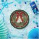 Schönes, originelles handgemaltes Kunstwerk und grafisches Design von Audrey Jeanne Roberts hat ein elegant handgebundenes rotes Samt mit goldgekracktem, kiefernem Bug in einer frischen Fichte und Kiefernkranz. Zaubersterne funkeln über das Plattendesign und das Set des handgeschriebenen Schriftzeichen "Frohe Weihnachten" aus dem Glitzer in den klassischen Weihnachtsfarben Rot, Grün und Gold-Glitzer. Fügen Sie die passenden Servietten hinzu, und dieses dekorative Set wird für einen festlichen Anlass zu jedem Weihnachtsfest, Business Corporate Event oder Familienfeier, die Sie veranstalten können, sorgen. Ihr Familienname, Ihr Firmenname oder Ihre Nachricht werden mit dem vorgegebenen Vorlagenfeld problemlos ausgetauscht.