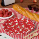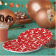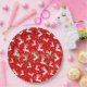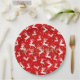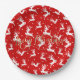 Gold Frohe Weihnachten und Rentiere auf einem roten Hintergrund.
