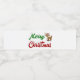 Wasserflaschenlabel mit Frohen Weihnachten in 3D-grünem und rotem Text und einem Rentier. Erhältlich für verschiedene Flaschenarten und -größen.