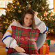 Hübsches kariertes Kissen mit frohen Weihnachten. Rot kariert ist ein schönes, traditionelles Weihnachtsmuster.