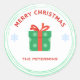 Frohe Weihnachts-Rot-Text-Geschenkboxen auf weiß Runder Aufkleber
