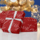 Modernes und elegantes Weihnachts-Rot Packpapier. Weißer Schriftart dekorative handgeschriebene Kalligraphie.