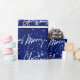 Frohe Weihnachts-Script Blue White Gold Confetti Geschenkpapier