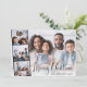 Moderne Urlaubskarte mit Ihrem Foto überlagert mit einem filmartigen Streifen aus drei kleinen quadratischen Fotos, "Frohe Weihnachten" in festlicher Schrift und Ihrem Namen in einfacher Typografie. Fügen Sie zwei zusätzliche Fotos auf der Rückseite und Ihre individuelle saisonale Nachricht.