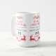 Niedliche Tasse Design. Fröhliche Weihnachten und das neue Jahr-Retro-Textdesign in grün und korallenrot. Pair-od-Rentiere mit niedlichen Weihnachtsbeeren und individualisierbarem Jahr.
