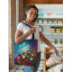 Mittlere Weihnachtskiste mit individuellem Text. Farbenfrohe Dekoration auf tiefblauem Hintergrund. Personalisieren Sie diese Tasche mit Ihrem eigenen Text.