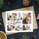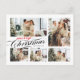 Elegante, einfache Typografie Weihnachtspostkarte. Das Design besteht aus 5 Fotos, Typografie-Drehbuch '' Frohe Weihnachten'' in edler Rot & Schwarz handgeschriebener Schrift und Familienname auf der Vorderseite. Personalisieren Sie Ihre Nachricht mit der Rückseite weiter.