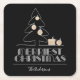 Auf diesen Untersetzer aus schwarzem Vierkantpapier werden die Worte Frohe Weihnachten in Vintager Retro-Schrift, ein weißer Skizzenbaum mit Imitaten, vergoldeten Folienschmuck und Geschenke vorgestellt - personalisiert mit Ihrem Familiennamen. Stilvoll für jeden Weihnachtsfeiertag oder als Geschenk der Gastgeberin. PASSENDE Artikel in unserem Geschäft.