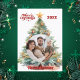 Weißer Hintergrund, roter Text und Foto auf der Vorderseite. Mit einem großen Weihnachtsbaum dekoriert. Ihr Text und Ihre Namen auf der Rückseite. Frohe Weihnachten ist mit einem Retro-Schriftart geschrieben.
