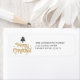 Das festliche Rücksendelabel zeichnet sich durch einen modernen Baum aus, der frohe Weihnachten in Gold geschrieben hat. Es ist der perfekte Weg, um Freunden und Familie lassen, wo Sie während der Ferienzeit wohnen. Dieses Label ist sicher, um eine Touch von Urlaub zu Ihrem E-Mail-Fröhlichkeit hinzufügen und von jedem, der es sieht, bemerkt werden.
