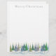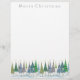 Ein festlicher Letterhead, der mit einem Hain von Weihnachtsbäumen in Blau- und Grüntönen geschmückt ist und in schwarzem Stift und Tinte mit verschiedenen geometrischen Mustern gezeichnet wird. Sie können die Formulierung ändern oder weglassen, um Ihren Bedürfnissen gerecht zu werden.