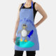 Diese phantastische Schürze ist mit einem niedlichen kleinen, grau-weißen Pinguin mit schwarzen Knöcheln, gelbem Schnabel und Füßen ausgestattet. Der Pinguin hält einen großen blauen Fisch mit einem Flossen und stehend auf einem blassblauen Eisklumpen. Neben dem Pinguin gibt es ein offenes Geschenk mit festlichem Band.