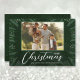 Feiern Sie den Urlaub mit dieser einfachen Weihnachtskarte, die eine Grenze von Kiefernstrassen und Punkten auf einem dunkelgrünen Hintergrund mit den Worten Frohe Weihnachten und Ihre Namen in schicken Schriften. **VERTICAL Karte für Sie in unserem Geschäft gemacht. Wählen Sie Matte für schwerstes Papier und High Definition für beste Foto-Qualität.