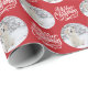 Foto Packpapier, personalisiert mit Ihrem Bild und mit der Hand mit Frohe Weihnachten in gebürsteter Kalligrafie. Die Fotovorlage ist ein Set bis zur runden Darstellung des Bildes. Wenn Sie Probleme mit der Bildplatzierung haben, sollten Sie versuchen, Ihr Foto auf ein Quadrat zuzuschneiden und es erneut hochzuladen. Die Hintergrundfarbe ist rot, die Sie gerne ändern können (klicken Sie einfach auf "Bearbeiten mit dem Designwerkzeug").