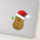 Frohe WeihnachtsKartoffel mit einer roten Weihnachtsmannmütze mit einem weißen Pelzschnitt und einem weißen flauschigen Pompom. Sein Körper ist braun mit kleinen schwarzen Punkten für die Augen und einem großen glücklichen Lächeln. Er hat Arme und hält grüne heilige Blätter mit roten Beeren.