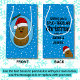 Adorable niedliche, fröhlich braune Cartoon Kartoffel mit einer rot-weißen Weihnachtsmannmütze. Die Kartoffel ist in einem Cartoon-Art-Stil und farbenfroh braun, hat Arme und Finger und ein großes glückliches Lächeln mit Augenpunkten. Die Weihnachtsmannmütze auf seinem Kopf ist rot mit einem weißen Trimm und einem weißen Pompom, der unten hängt. Er ist in einer hellblauen ovalen Form mit einem dunkelblauen Rahmen und zwei grünen heiligen Blätter mit zwei roten Beeren oben im Oval. Die Hintergrundfarbe ist hellblau, und die weißen Schneeflocken schweben, um diesen niedlichen Geschenktaschen ein festliches Gefühl zu geben. Auf der Rückseite des Beutels befinden sich Vorlagen, die verlassen werden sollen, wie sie sind, oder ersetzen Sie den Text durch Ihre eigene Nachricht und fügen Sie Ihre Namen hinzu.