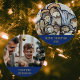 Religiöse Christliche katholische Weihnachtskrippe Szene Custom Family Foto Ornament, erstellt mit dem religiösen Bild The Nativity (1863) von Sir Edward Burne-Jones. Es repräsentiert die Weihnachtskrippe in Bethlehem: der Säugling Jesus Christus, der Sohn Gottes, umringt von Seiner Heiligen Mutter, der gesegneten Jungfrau Maria, dem Heiligen Joseph, den Engeln und den Hirten, die zu Ihm kamen. Sie können den Text und das Foto personalisieren.