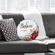 Dieses fröhliche Weihnachtskissendesign zeigt "Glauben" in modernen Kalligrafieschriften, mit rotem, individuellem Text, der mit Ihrem Namen und Datum personalisiert werden kann. Schöne rote Blume mit Beeren und Grünpflanzen prägen das Design. Das Design ist auf beiden Seiten des Kissens gleich. Eine wunderbare Ergänzung zu Ihrer Wohngestaltung im Urlaub!