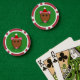 Dieses phantastische Set mit Poker-Chips bietet einen lustigen Cartoon einer Weihnachtsmaus mit großen runden Augen, rosa Ohren, einer kleinen rosa Nase und niedlichen kleinen zwitschigen Whiskers. Die Maus trägt eine rot-weiße Weihnachtsmannmütze, die Weihnachtsfertig ist.