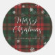 Frohe Weihnachtsschneeflocken Kariertes Script Cus Runder Aufkleber