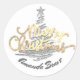 Frohe Weihnachtsschrift Name Gold Gray White Runder Aufkleber